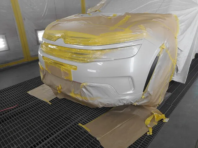 調色後 塗装部分以外をしっかりとマスキングし機密性の高いブースで塗装していきます。