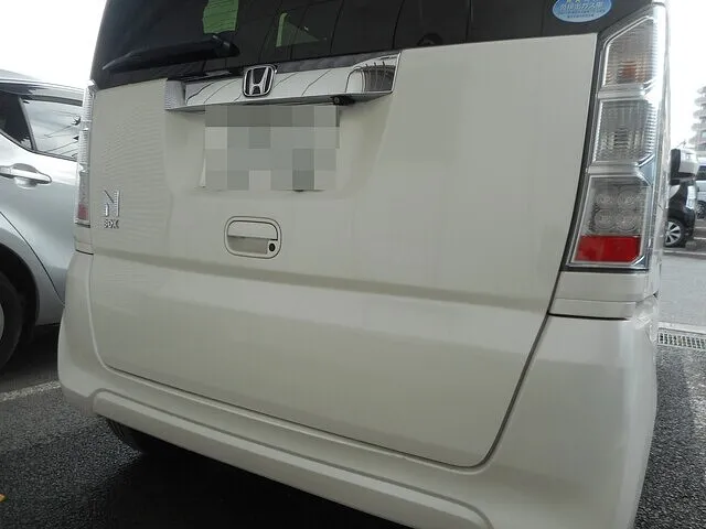ホンダ N-BOX リヤゲート 傷・凹み鈑金塗装修理の完成写真です。